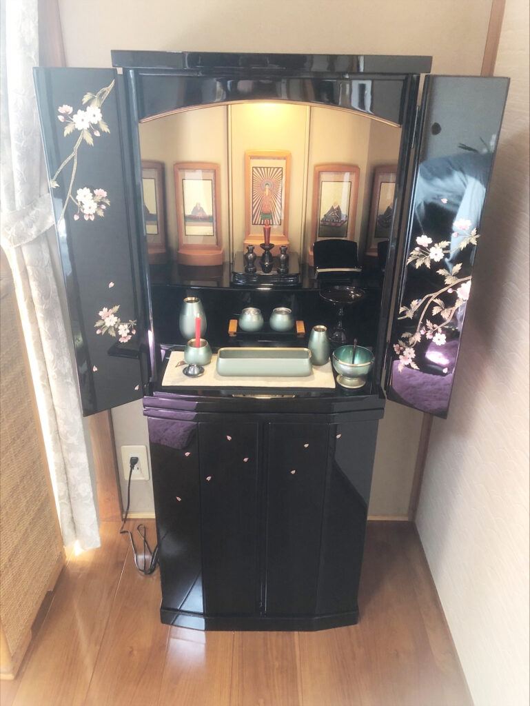 O様は私の昔からの知人で家もご近所で仲良くさせていただいております。今回、ご主人を亡くされ「初めてのことで分からないことが多い」と次男様と相談に来られました。ご長男様ともラインでやり取りされていました。「お母さんが気に入ったので良いよ」とおっしゃいました。家具調仏壇を選ばれました。頼ってくれて、ありがとうございます。これからもよろしくお願いします。
