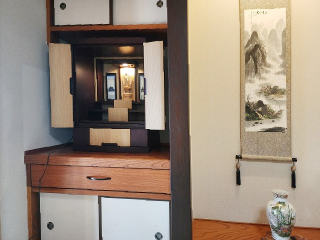 いつも当店をご利用いただき、まことにありがとうございます。以前、小型仏壇を購入されました。今回、大きいサイズのお仏壇に買い替えられました。仏間を少し改造させていただきましたが、とても綺麗におさまりホッといたしました。
