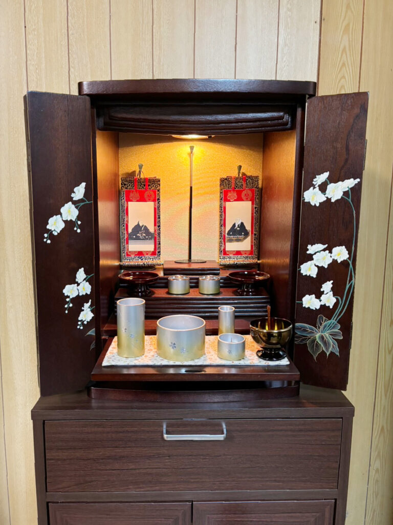 この度のお仏壇のお買い上げ、まことにありがとうございます。仏壇と台の色合いがよく、また扉の絵がとても綺麗でした。今後ともよろしくお願いいたします。