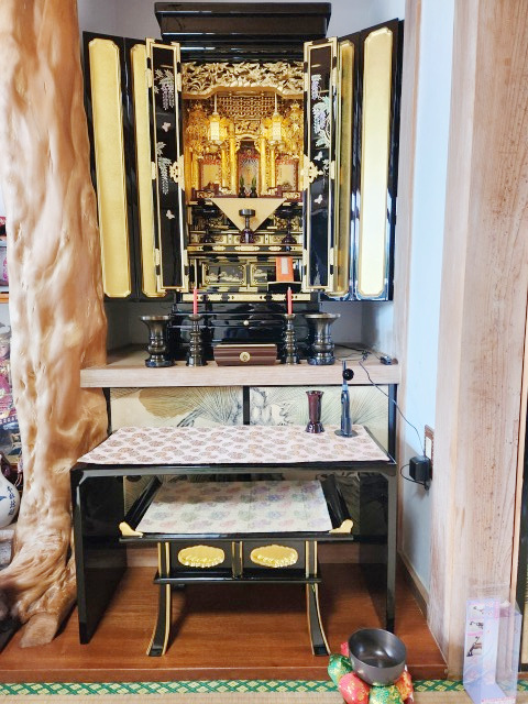 ご主人を亡くされたT様。ご主人が生前「藤の花を見に行きたい」とおっしゃっていたそうです。中板に藤の花の蒔絵が描かれたお仏壇を一目で気に入られました。「きっと主人も喜んでくれると思う」と話されたお姿が印象的でした。ご縁に感謝いたします。 合掌