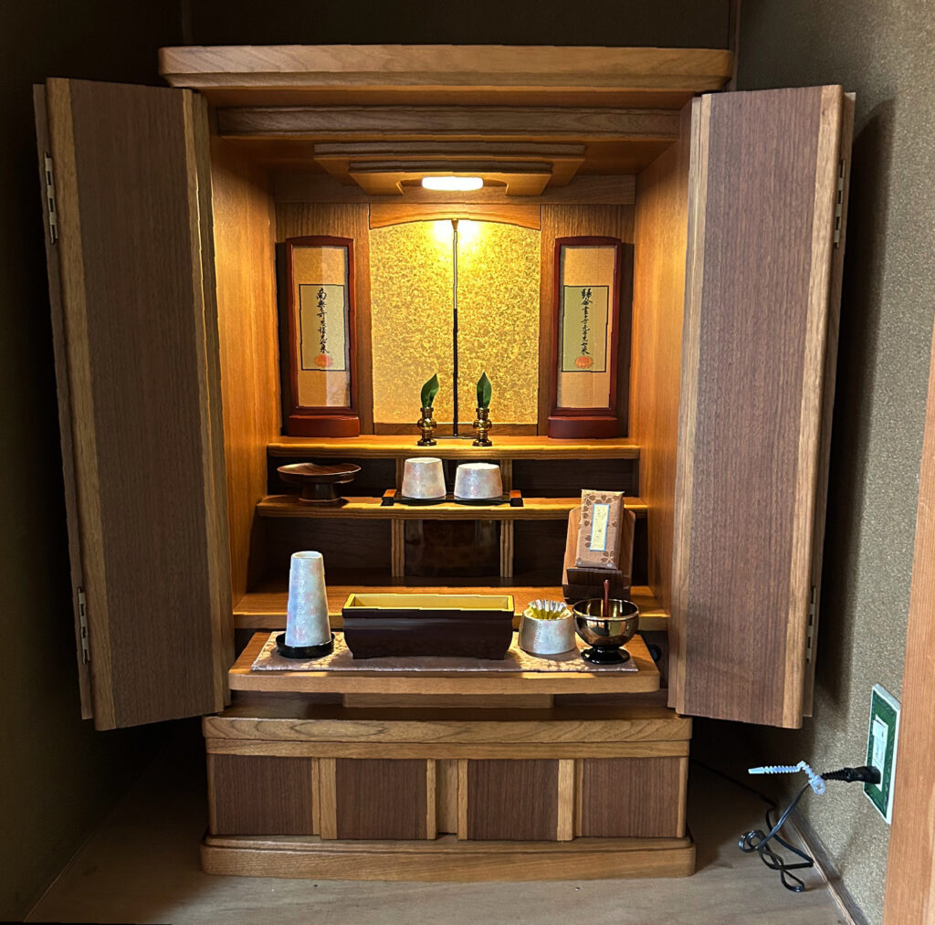この度はご縁をいただき、まことにありがとうございます。はじめは小型のお仏壇をお考えでした。広い仏間をお持ちでしたのでサイズの合う幅広の家具調仏壇をご案内させていただきました。どっしりと納まり存在感がありました。「主人も喜んでいると思います」と言っていただけました。たいへん嬉しく思います。これからも長いお付き合いを、よろしくお願いいたします。