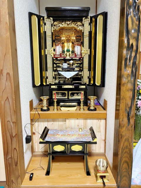 宗派の合ったお仏壇をお探しでした。浄土真宗の正式なお仏壇である金仏壇を購入されました。当社では安心の10年保証でアフターサービスも万全に整えております。今後とも長いお付き合いを、よろしくお願いいたします。
