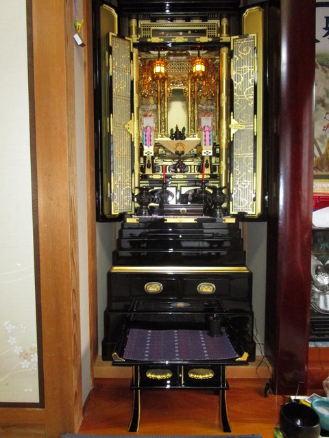 実のお母様が亡くなられ嫁ぎ先と違う宗派なので息子さん夫婦、お孫さんたちと一緒に新しい仏壇の説明を熱心に聞いていただきました。とても喜んでいただきました。