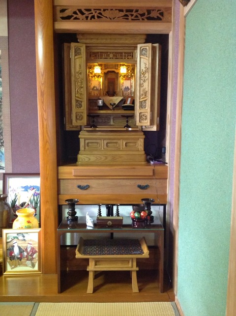 鹿屋店へご来店いただきありがとうございます。いままでお世話になった金仏壇に感謝して、これからお世話になる唐木仏壇を入れて父さんの命日に合わせて納品できた事に感謝もうしあげます。