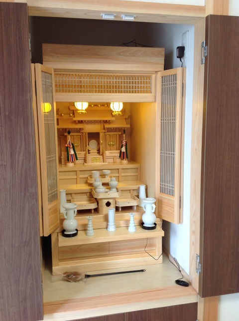 この度は古屋鋪にご縁をいただきまして誠にありがとうございました。Y様との最初の出会いは大切なお母様を亡くされ悲しみの中神具のご購入からでした。またこの度新築をされ場所もよく立派なお家にお母様へのオリジナルの神道壇も設置させていただき神間にピッタリで安心いたしました。またこころあたたまるメッセージをいただきありがとうございました。これからも長いお付き合い宜しくお願いいたします。