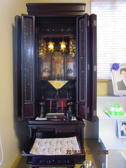お母様と娘さんと二人で来店され店内を見て回られ浄土真宗でしたが唐木仏壇が目にとまり、仏具を荘厳した所とても気に入っていただきました。ご親戚の方が当店がいいですよと勧めてくれたそうです。とてもありがたかったです。