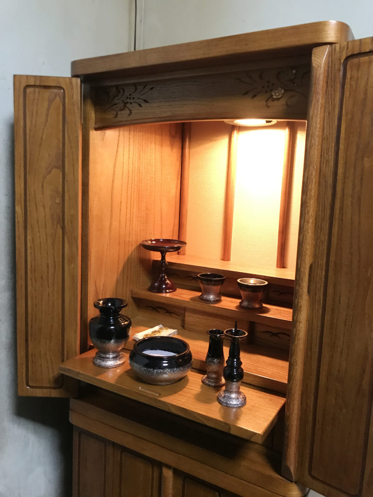 お兄さまご夫婦と8月に仏壇を見に来られ3月に納品させていただきました。コンパクトで明るい色のお仏壇でしたのでお部屋も明るくなったのではないかと思います。お仏壇があることで安心して頂けて本当に良かったです。これからも末永いお付き合いをお願い致します。