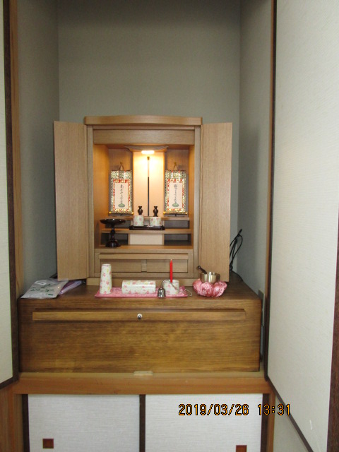 現在の住宅に合う仏壇と特注台の提案をさせていただきました。川辺工場製作の特注台を気に入って下さりました。ありがとうございました。