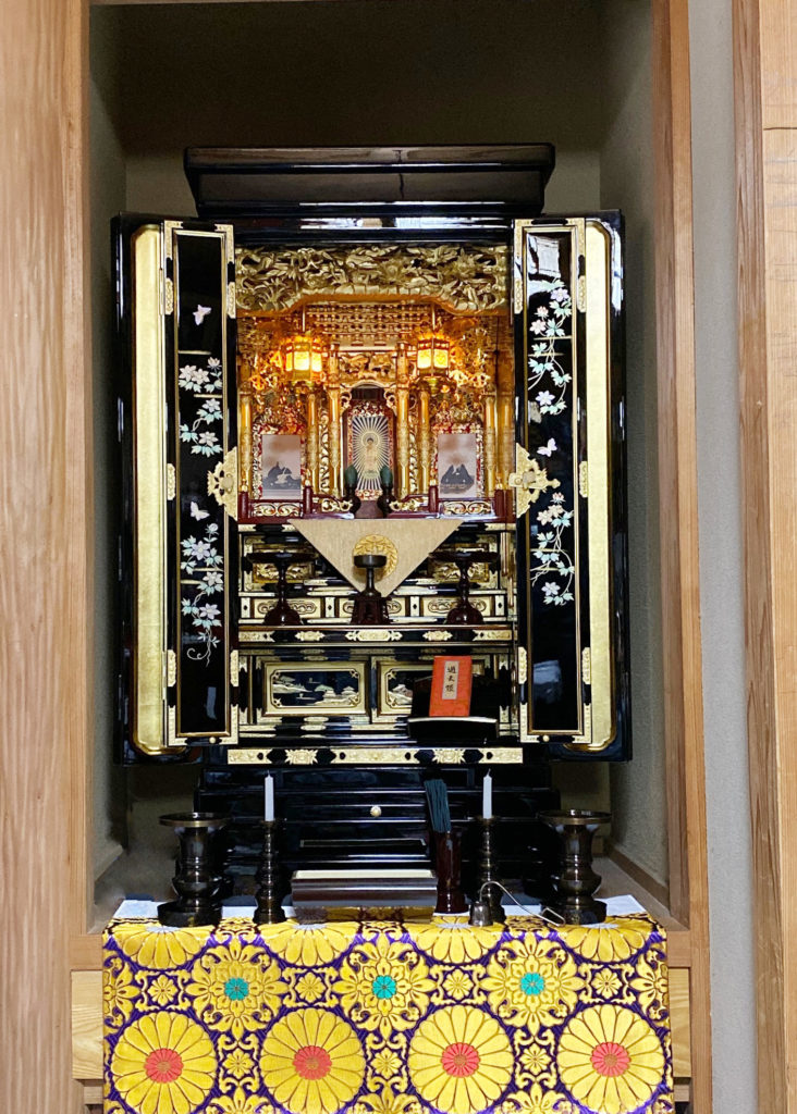 お母様とお嬢さん、お二人でのご来店でした。お母様が障子の中板に蒔絵の入ったお仏壇を気に入ってくださってのご縁となりました。これからもご家族でお仏壇に手を合わせていただければと思います。