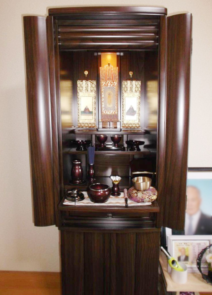 生前整理をされ、終の住家で亡きお父様を偲ぶためのお仏壇を決めていただきました。椅子に腰掛け、ゆっくりお父様とお話できると思います。またお店にも、お喋りしに来てください。お待ちしております。
