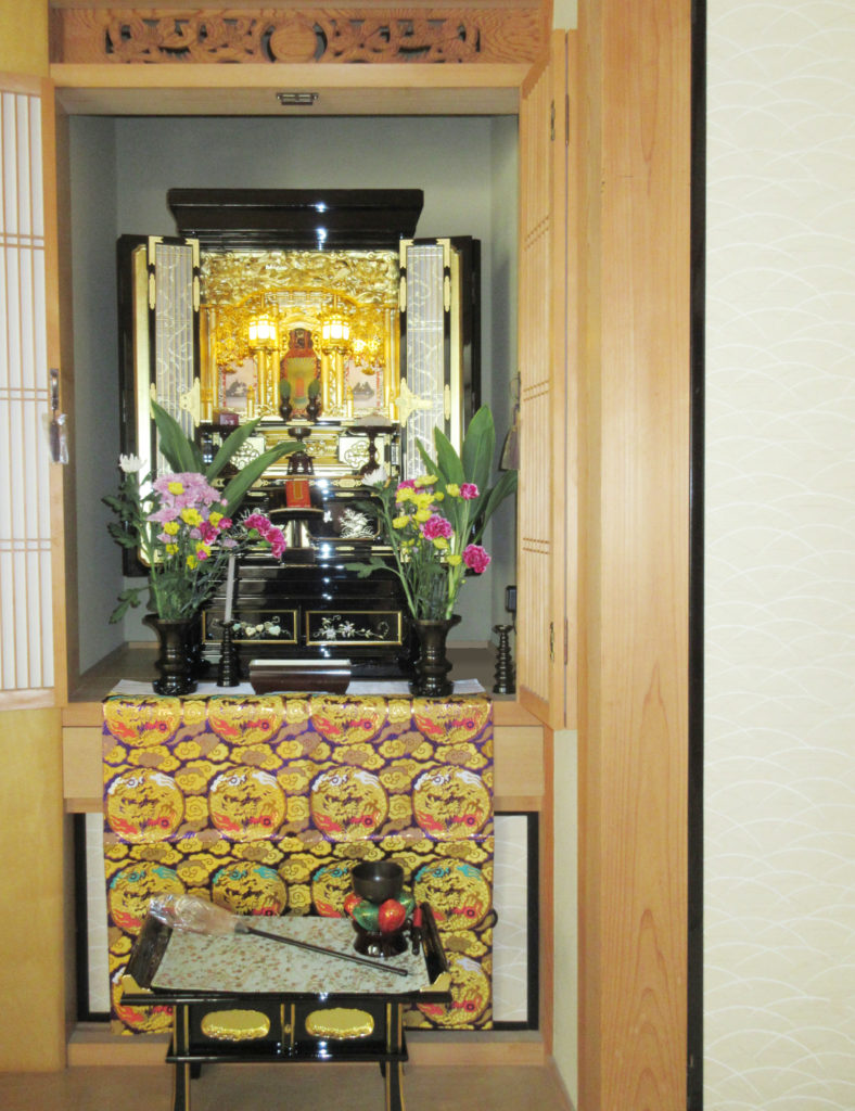 お仏壇ご契約いただき、ありがとうございます。浄土真宗の専用のお仏壇が金仏壇なんですよとお話をさせていただき、金仏壇をゆっくり見て、ご予算と相談されて、このお仏壇に決めてくださいました。ご縁をいただき本当にありがとうございます。