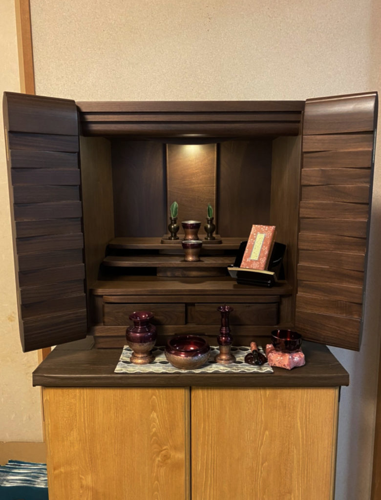 今回N様におかれましては、若くしてご主人をなくされました。ご挨拶に行きましたところ、お仏壇をお持ちではなく「お店に見に行きます」とお約束いただきました。お力を落としの中、お疲れの中ご来店くださりご契約いただきました。感謝しております。