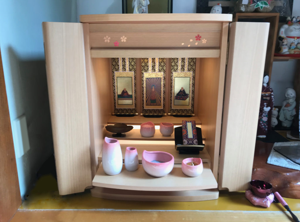 川辺二日市のご縁でお宅を訪問させていただき、伊集院本店へ来店くださいました。ご夫婦ともに家具調仏壇「サンク」を気に入ってくださり、すぐにご契約となりました。ご自宅にお届けして設置してみると、お部屋の雰囲気に良く合い、このお仏壇にされたこと「なるほど」と思い納得いたしました。今後とも、どうぞよろしくお付き合いください。何かご不明なこと、ございましたらお気軽にご連絡ください。ありがとうございました。