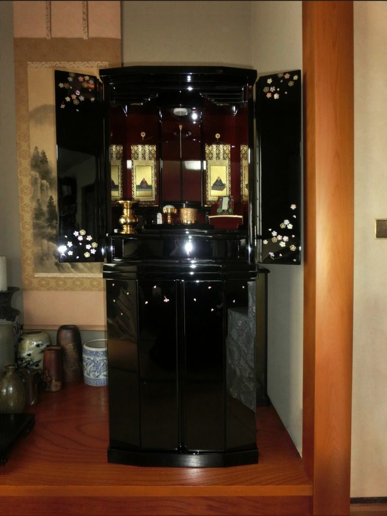 M様は息子さん、娘さんとご一緒に来店されました。まだ、お若いのにご主人を亡くされ、お悲しみはいかばかりかとお察しいたします。一番最初に気に入ってくださったのが雰囲気の優しい「塗モダン」のお仏壇でした。子供さんたちが他県にいらっしゃるという事で寂しくなると思いますが、きっとお仏壇が奥様の心をなぐさめてくれると思います。何かお困りの事ございましたら、いつでも遠慮なくご連絡ください。