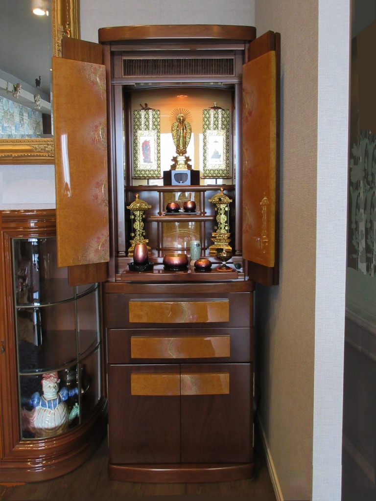 この度はお仏壇ご購入ありがとうございました。奥様、ご主人様ともに気に入っていただけました。お仏壇とリビング、サイドボードとも同色で、たいへん綺麗で素敵な雰囲気でした。お店のご近所ですので、これからも是非ご来店くださいませ。ありがとうございました。