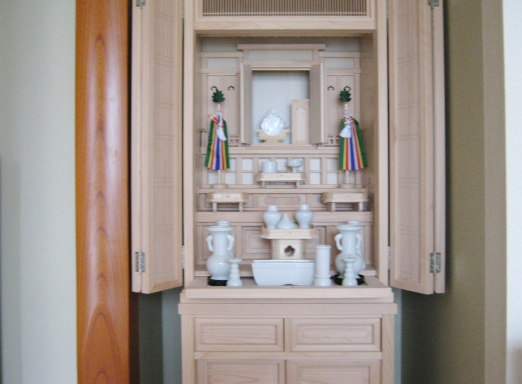 今回、私ども「佛壇の古屋鋪 鹿屋店」とのご縁をおつくりいただきまして、誠にありがとうございました。ご契約いただいた神道壇だけでなく、他にもいろいろとご用がありましたら、いつでもお尋ねください。お店の近くまで来られた際には、お茶でも飲みにお立ち寄りいただければと思います。