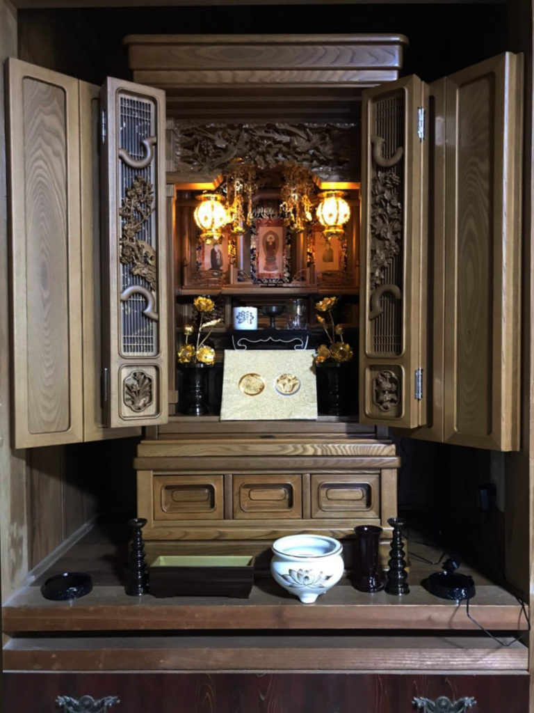 今回私ども「佛壇の古屋鋪 鹿屋店」にご縁をくださり、まことにありがとうございました。最初は息子様が仏具を買いに、その後お父様が来てくださりお仏壇をご契約いただきました。仏間、そしてお部屋の雰囲気にとても合ったデザイン、色のお仏壇だと思います。ほんとうにありがとうございました。またこれからもお店の方へ遊びにいらしてください。