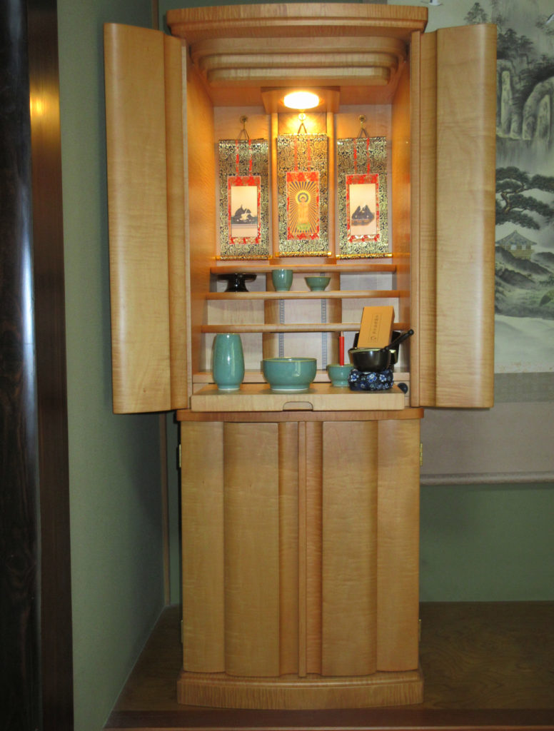 T様はご主人が亡くなられお仏壇をお探しでした。最初、息子さんが一人で下見に来られ、お母様にお仏壇を買って差し上げると聞いた時には感動いたしました。みな様でお仏壇を選ばれている時もお母様を思いやっておいでで「温かいご家族だな」と感じました。これからも末永く手を合わせていただければ、ありがたいです。