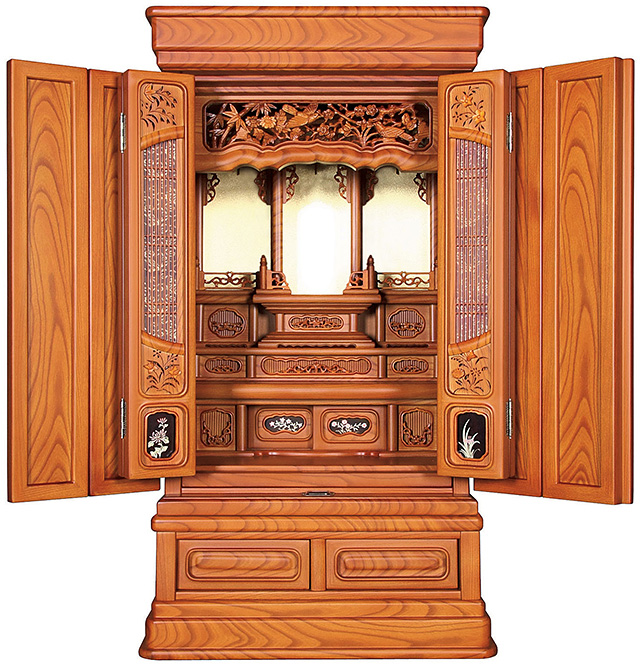 ご家族みなさんで来店してくださいました。ありがとうございました。娘さん達は唐木仏壇、お父様は金仏壇と最初はご意見が分かれましたが、最後は明るい色の唐木仏壇「天言」を選ばれました。お仏間にもぴったりでとても納得、満足していただけ、私どもも嬉しくなりました。これからも末永く、お付き合いの程、よろしくお願いいたします。