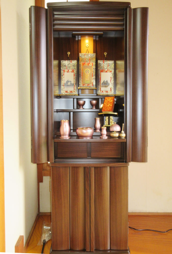 この度は、まことにありがとうございました。以前、1度ご夫婦で来店くださっていました。今回のお盆セールのご案内を送らせていただきましたところ、再度ご来店くださいました。最初は台の上に置く小型仏壇をお探しでいらっしゃいました。床の間にそのまま置ける直置きタイプの家具調仏壇「キッカ」をご提案すると、とても気に入ってくださりご契約となりました。ぜひまたご夫婦でご来店ください。