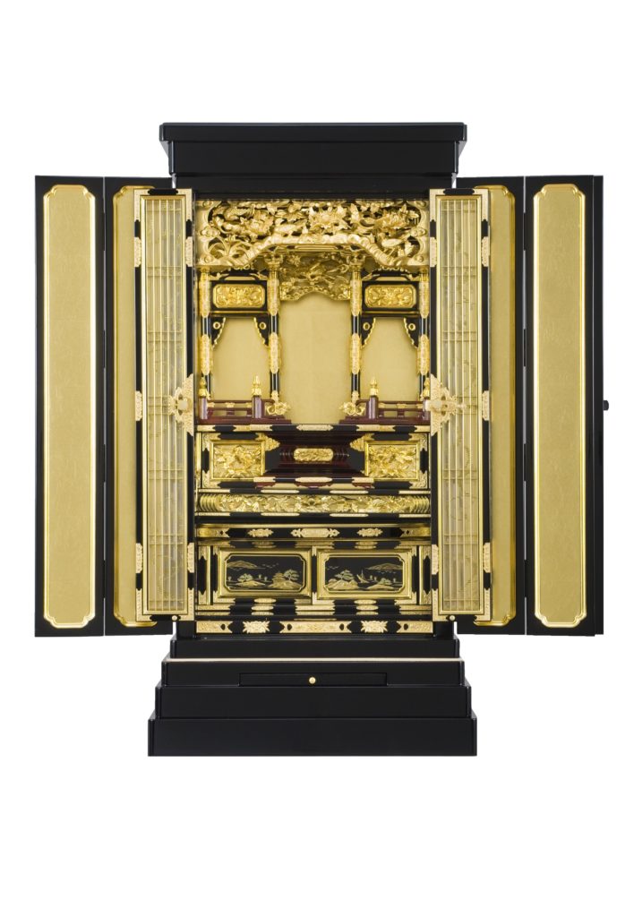 旦那様のために、今まで長く使ってきたお仏壇を新しいものに替えてあげたいという奥様のお気持ちにぴったりの、花手毬の蒔絵が入った金仏壇です。このお仏壇をこれから娘さんと末永く使っていただければと思います。ご縁をいただき、ありがとうございました。