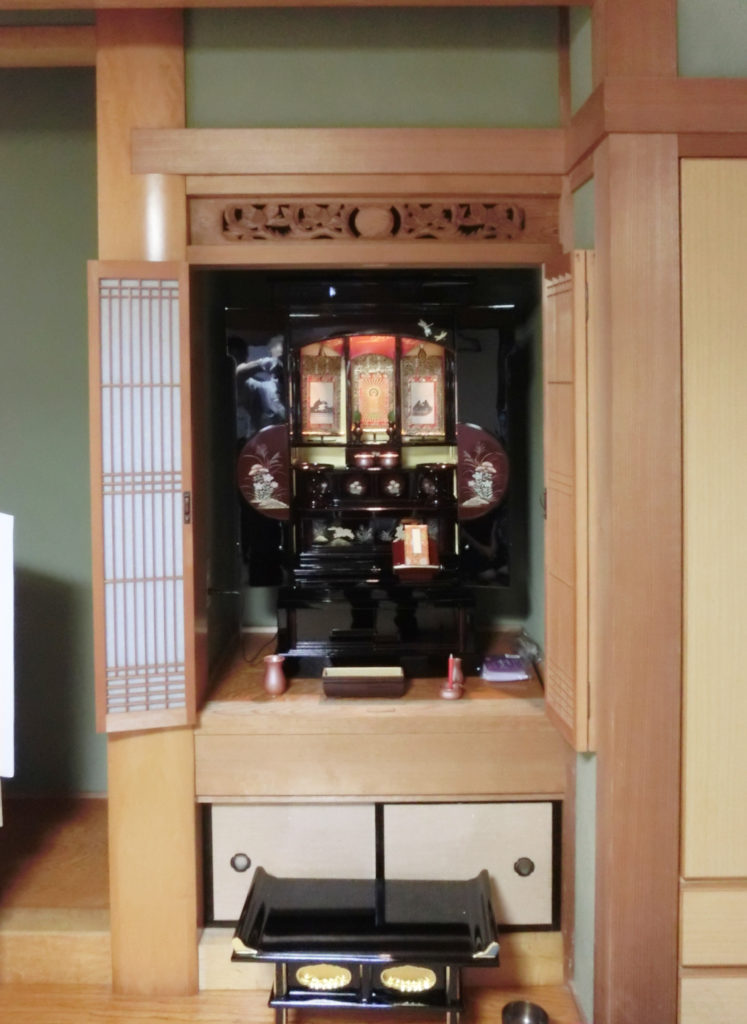 ご自宅にお仏壇を5本ほど持っていき、実際にお飾りした状態を見て選んでいただきました。ご本人はもちろん、ご両親や娘さん、お姉様方も熱心にご検討してくださいました。ありがとうございました。お位牌のご注文もいただいております。出来上がったらお届けいたします。みな様どうぞお元気で、大切な亡き方に、お念仏さしあげてください。