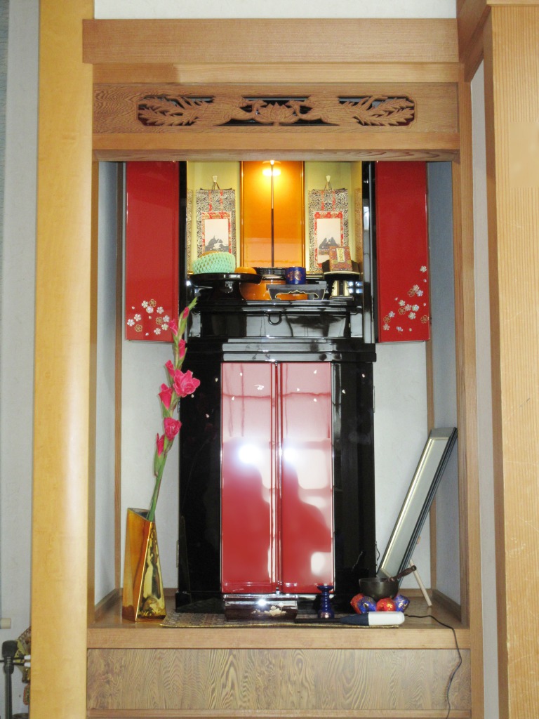 店内正面に飾ってあった塗モダン仏壇「すずめ」に一目惚れされご購入くださいました。奥様の雰囲気に、良く合ったお仏壇だと思います。今後とも、よろしくお願いいたします。