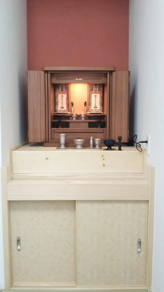 新築おめでとうございます。新築に合わせお仏壇の買い替えをなさいました。お母様と娘様のお二人で来店され、家具調仏壇「ケープ」を気に入ってくださり、それに合うお仏具をお二人で楽しそうに選ばれていました。お二人の息はピッタリで、見ている私たちも楽しい時を過ごしました。このご縁に感謝です。ありがとうございました。