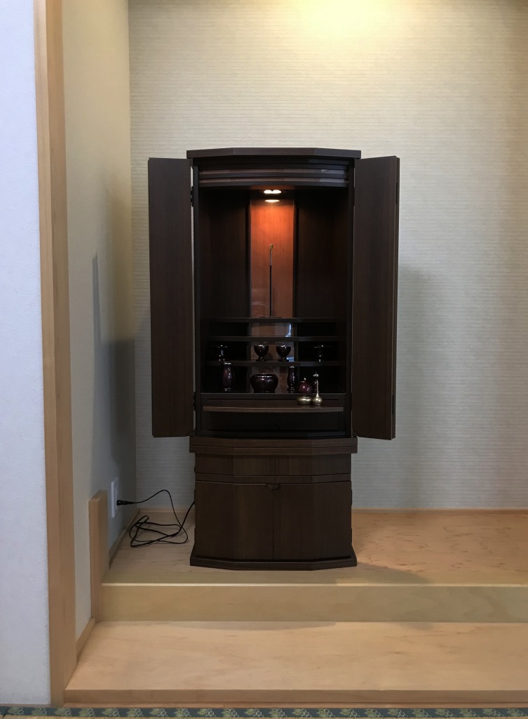 お忙しい中、何回もお仏壇を見に来てくださいました。ありがとうございます。サイズ、色等なかなかK様のお好みに合うものが見つからず、苦労されたと思います。最後は家具調仏壇「リバール」を気に入ってくださいました。本日納品し床の間に設置してみましたら、お部屋の雰囲気とマッチしてとても綺麗でした。これからも何かお困りの事ありましたら、お気軽におたずねください。よろしくお願いいたします。