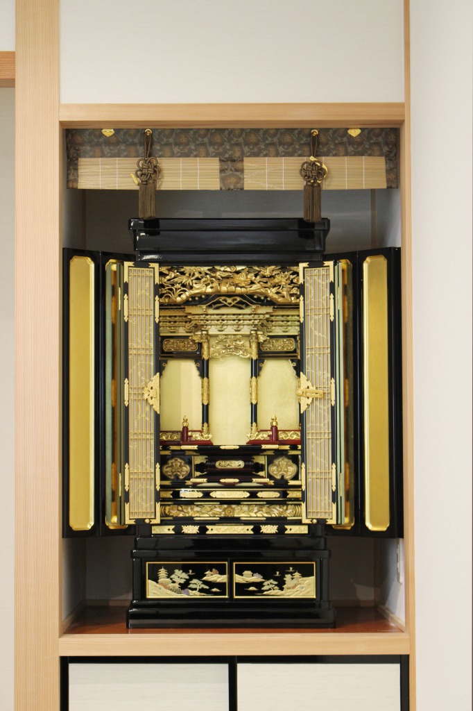 N様はご夫婦で来店されました。いろいろとお仏壇のお話をさせていただきました。金仏壇「月華」を気に入ってくださり、ご契約くださいました。とても喜んでいらっしゃいました。ご縁をいただき、ありがとうございます。