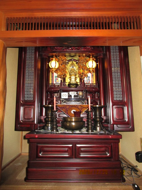 最初は奥様がお一人で来店されました。その際仏間寸法をお伺いして、ちょうど良いサイズのお仏壇を2点ほど案内させていただきました。2日後にご主人様と再来店され唐木仏壇「三岳」をご契約いただきました。お仏壇が仏間に入った時、とても喜ばれ安心されたそうです。ご縁をありがとうございます。