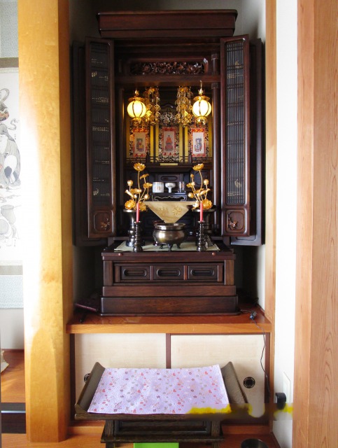ご実家から移動されたお仏壇が「今の住いの仏間サイズに合っていない」と、買い替えを検討されてのご来店でした。何本か紹介させていただいた中から、ご主人様が唐木仏壇「行基」を気に入ってくださり、ご契約いただきました。仏間、お部屋の雰囲気にもぴったりで、喜んでいただけました。ご縁をいただき、まことにありがとうございました。