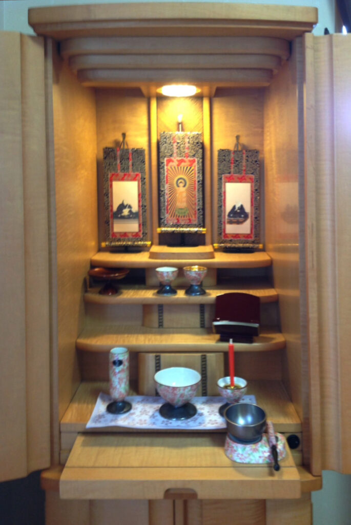 この度はお仏壇の新規購入をさせていただきまして有難うございました。家内を亡くし、初七日を終わらせた彼岸4連休にて親戚が一同に会して仏壇決定、設置する事ができて有難く思います。大津店にて上置仏壇を見せていただき、そこで貴店の紹介をうけ来店。店長の助言で「フロアーの床板の色・壁紙の色に合わされた方が良い」との事で選ばせていただきました。難を言えば駐車場の入りにくさ。切り返しを何回もしなくてはならない手間を感じました。当方がセンチュリーで来たことも、良くなかったのかもしれませんが。
