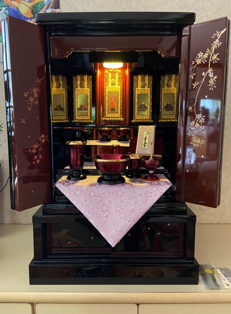 気に入られたお仏壇が、少し高さが足りなかったので特注で下台を作成させていただきました。「希望通りの仏壇になった」と、とても満足されたご様子でした。M様のご主人様に対する思いがとても伝わってきました。末永く大切にしていただけたらと思います。ご縁をありがとうございました。