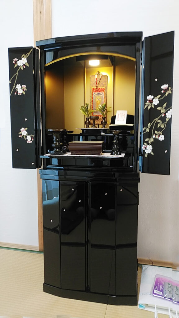 まだお若いご夫婦のH様。「母の供養のために」とお仏壇を探して来店されました。お母さまのイメージにあった塗モダン仏壇を選んでいただけることができました。これからもこのご縁を大切にいたします。何かお困りの事ありましたら、遠慮なくご相談ください。ありがとうございました。