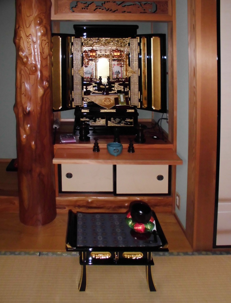 霧島市を訪問した際に、お庭で大工仕事中のご主人とお話しをさせていただいたのがきっかけでした。「仏間はあるが分家で仏壇はない」とおっしゃったので、お仏壇の必要性を説明させていただきました。後日ご来店くださり金仏壇「月華」をご購入いただきました。ご縁に感謝いたします。ありがとうございました。
