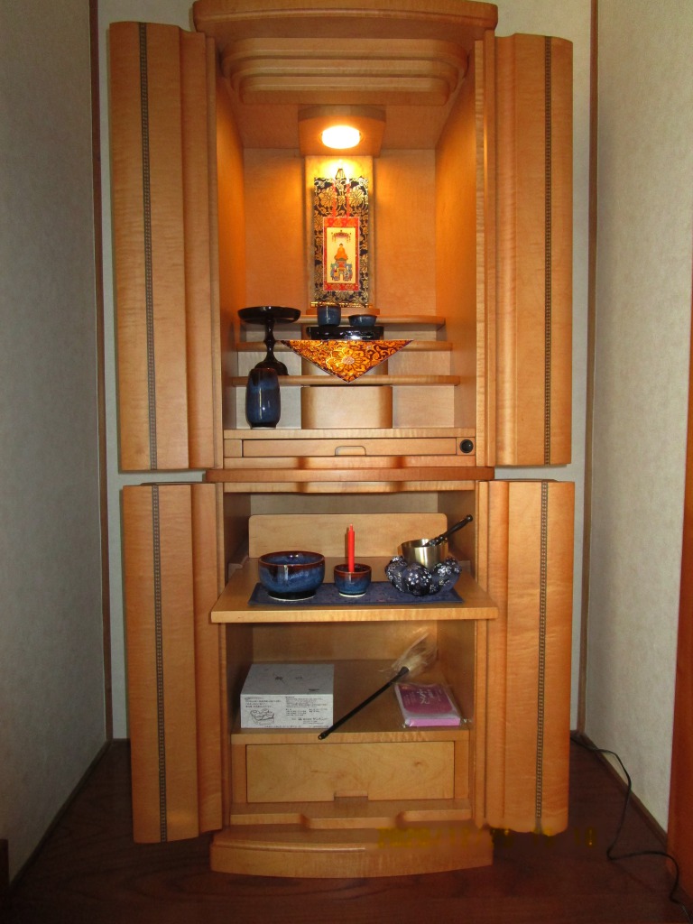 ご主人を亡くされ「新たに仏壇を」と、ご来店くださいました。ご実家にもお仏壇はあるとのことでしたが宗派が異なるためのご購入でした。色々見ていただきましたが、今回納めさせていただいた家具調仏壇を「主人の雰囲気と合っている」と気にいってくださいました。この度はご縁をいただき、まことにありがとうございました。