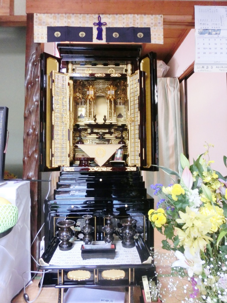 国産で浄土真宗本願寺派の宗紋が入った素敵なお仏壇をご購入いただきました。みな様とても気に入っておいででした。奥さまもきっと喜んでいらっしゃる事でしょう。下台には蓮の蒔絵が施されていて、お仏壇ととてもマッチしていました。これから末永く、よろしくお願いいたします。
