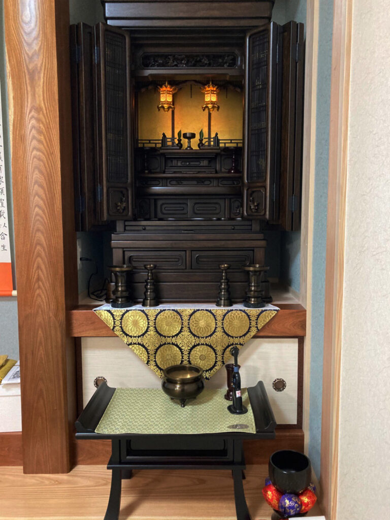 この度はご新築おめでとうございます。お母さまが娘さんのご新築にお仏壇を用意してくださいました。「好きな色のお仏壇を選べたね」と話されていました。今後とも、よろしくお願いいたします。