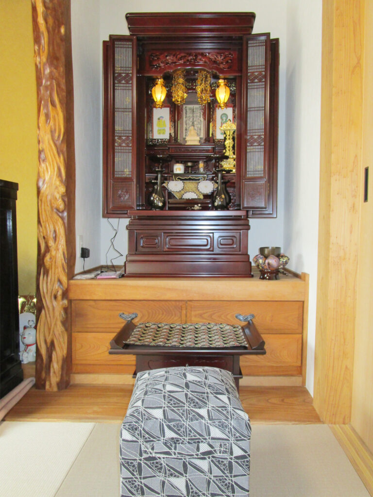 ご自宅を新築され今までのお仏壇だとお仏間に対して小さいとの事で、買い替えをご検討で来店されました。立派なお仏間でしたので、見劣りのしないお仏壇をご提案させていただきました。お子様、お孫様ともに一緒に仲良く手を合わせていただける場所になればと思います。この度はご縁をいただき、まことにありがとうございました。