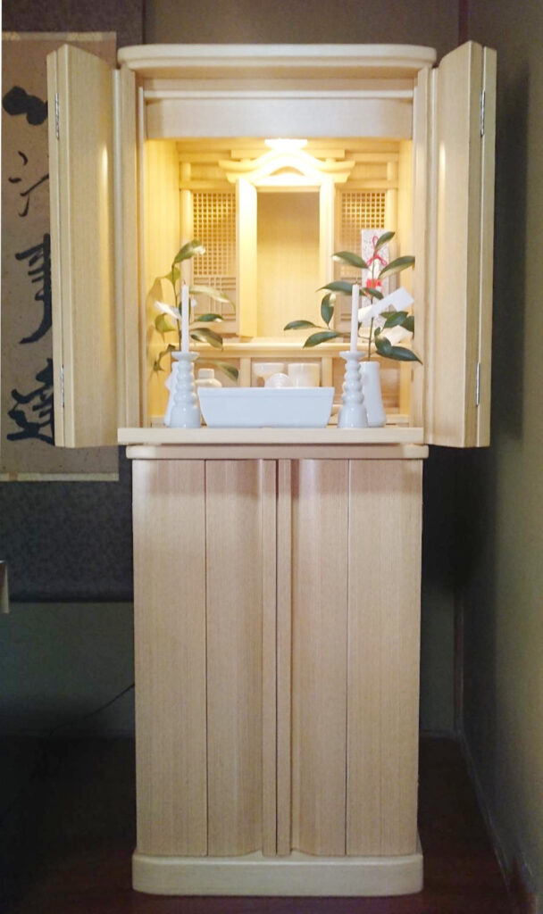 ご主人様を亡くされたY様。娘様とお二人で来店されました。すぐに家具調神道壇を気に入っていただき、ご契約くださいました。納品時もたいへん喜んでくださいました。また神具を買いに来店くださるとの事。スタッフ一同お待ちしております。