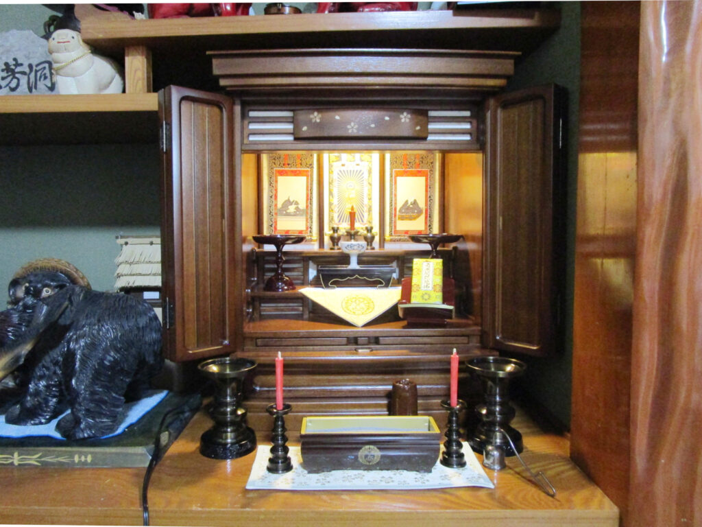新仏訪問でお伺いした際に「何も分からないので弟夫婦に任せています」と仰っていました。数日後、弟様ご夫妻と一緒に来店してくださいました。見せていただいていた仏間にピッタリのお仏壇をお薦めいたしましたら、皆さんに気に入っていただけ嬉しく思いました。ありがとうございました。