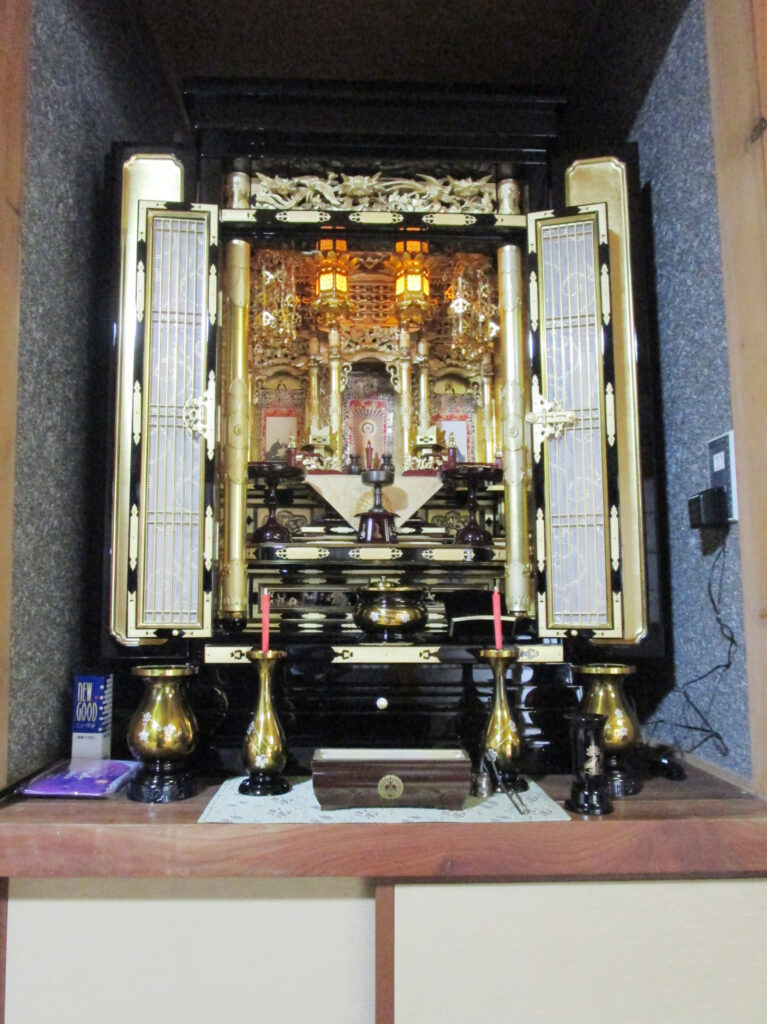 ご兄弟で来店されました。唐木仏壇にするか金仏壇にするか迷われていました。お仏壇の写真を撮って、お母さまに見ていただいて選ばれました。「宗派に沿ったものを」と最後は金仏壇に決められました。ご兄弟でお母さまのことを思いやり大事にされている事が、私どもにも伝わりました。ご縁を、ありがとうございました。
