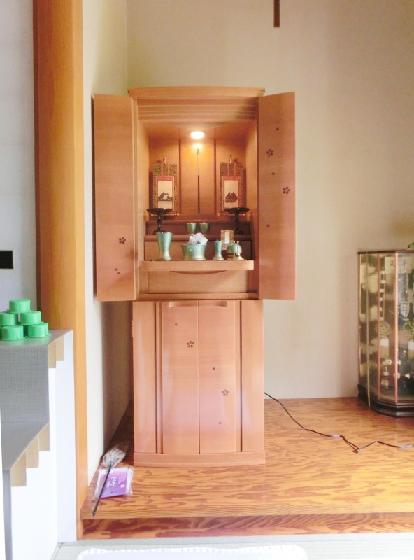 U様はご主人さまを亡くされ「四十九日法要までに仏壇が欲しい」と一人で来店されました。家具調仏壇を気に入ってくださいました。納品いたしますと、とても喜んでくださいました。また何か分らない事ございましたら、いつでもご連絡ください。ありがとうございました。