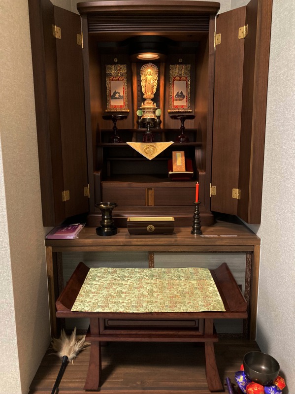 新築をされたT様。「モダンな仏壇が良い」とのことで京都でデザインされたお仏壇をご購入されました。ありがとうございます。今後も何なりとご相談くださいませ。