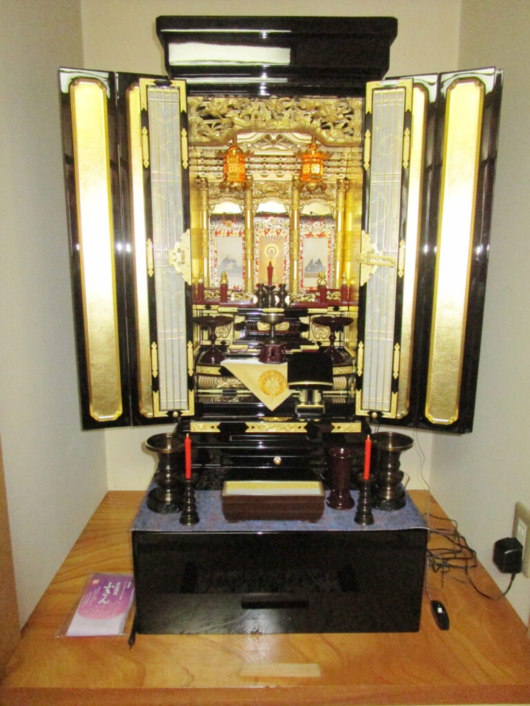 お母様を亡くされたY様のお宅に弔問でお伺いいたしました。落ち着いたあとに御来店くださいました。「仏壇を新調したい」とのことでご希望をお聞きし【月華13×28】をご提案いたしましたら気に入っていただけました。仏間にぴったり納まり良かったですね。穏やかに手を合わせていただければと思います。この度はご縁をいただき、ありがとうございました。