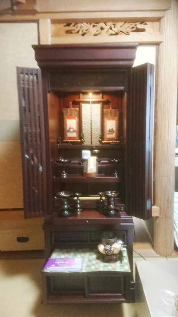 ご主人様を亡くされて「早く仏壇を入れたい」とのことで、息子さんご夫婦と一緒に来店されました。ご希望通りの紫檀色の家具調仏壇をご購入いただけました。納品いたしますとN様は安堵され、とても喜んでおられました。今回はご縁をいただき、ありがとうございます。分からないこともあるかと思います。お気軽にご連絡いただけたらと思います。