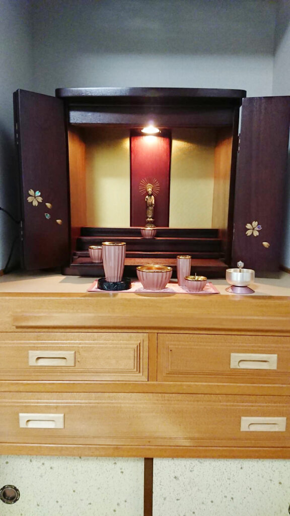 「洋風の自宅にあうモダンな仏壇を」とご夫婦で来店されました。家具調仏壇をご購入いただきました。同居されているお父様も、たいへん喜んでいらして嬉しく思いました。この度は「佛壇の古屋鋪 鹿屋店」をご利用いただき、ありがとうございました。