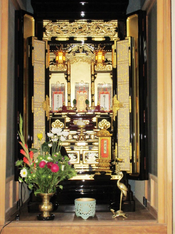初めてお伺いした時は「実家の仏壇より小さいものにしたい」と仰っていたT様。とても良いお仏壇で「T様宅のお仏間にもぴったりです」とご説明いたしました。「大事にしてきた仏壇なので息子にひきつげるのなら」と修復をお決めになりました。出来上がったお仏壇を見られ、ご夫婦ともにとても喜んでくださいました。こちらも嬉しく思いました。ありがとうございました。