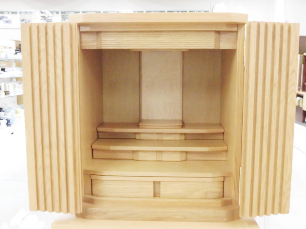 6月にお父様を亡くされたT様。「遺骨をしばらく家に置きたい、骨壺を入れる物を」と来店されました。サイズがちょうど良い家具調仏壇をご購入くださいました。ありがとうございました。くれぐれもご自愛くださいませ。